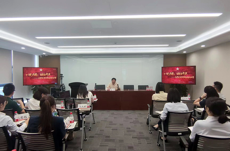 陳建以《以史為鑒,繼往開來——在黨史中汲取奮進的力量》為題,為寧波銀行九堡支行黨支部的全體黨員上了一堂生動的黨課,講述了中國共產黨的歷史沿革以及在大浪淘沙的革命歷程中,中國共產黨人淬煉出的堅定意志、初心和使命,并分享了冶金物資黨建品牌“映江紅·凝聚流·惠萬千”。陳建表示,此次結對共建活動是一次難得的學習機會,希望各位黨員堅守偉大的建黨精神,以堅定的理想信念砥礪對黨的赤誠忠心,奮進新時代。